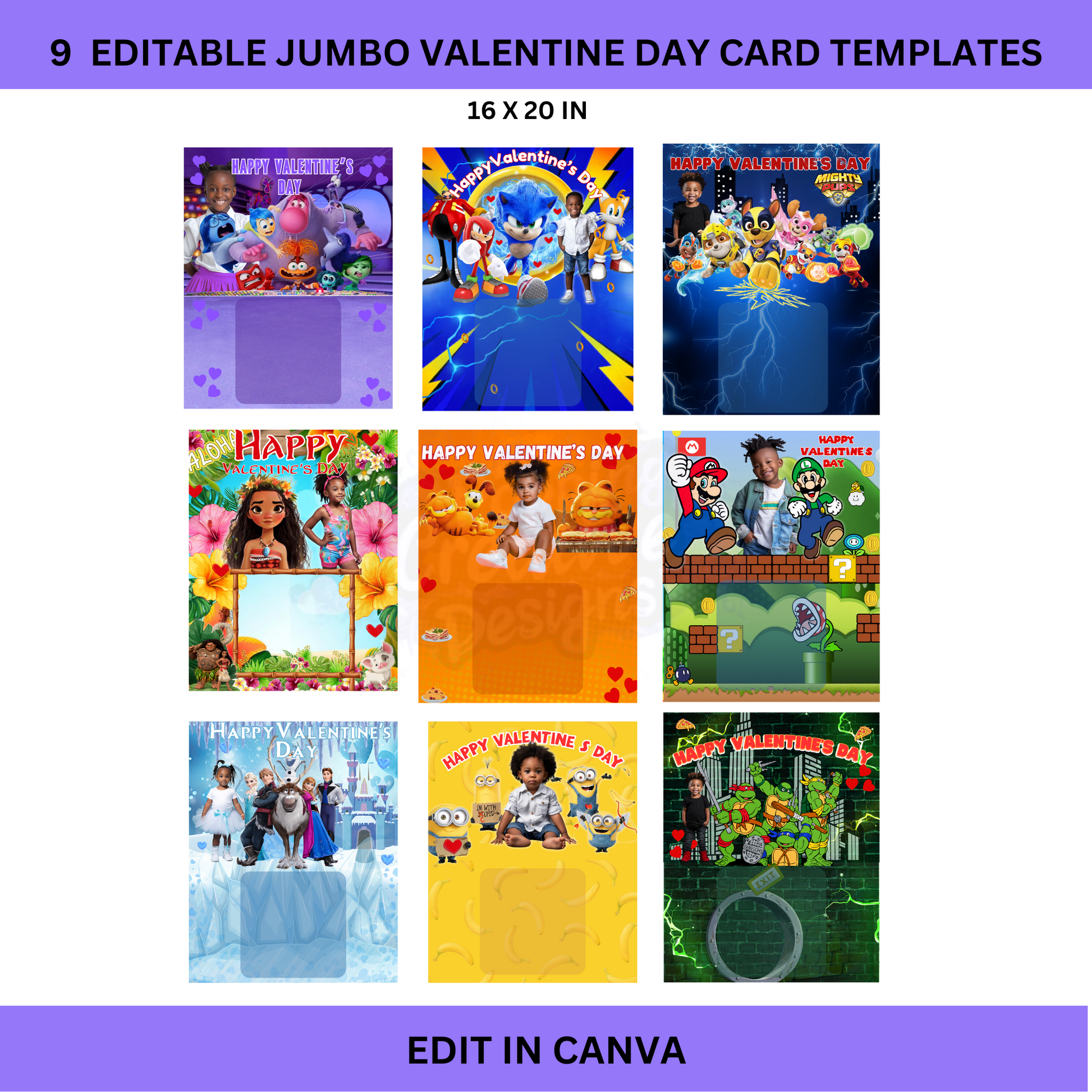 Create 9 beautiful, customizable Valentine's Day cards with our editable templates! Measuring 16 by 20 inches, these jumbo cards are perfect for making a statement and spreading love. Edit them easily in Canva (free version available), however some elements used may require yo to have a Canva Pro account. and wow your loved ones with a personalized touch. No physical shipping required, just digital access. You will receive a instant download once purchase is complete.