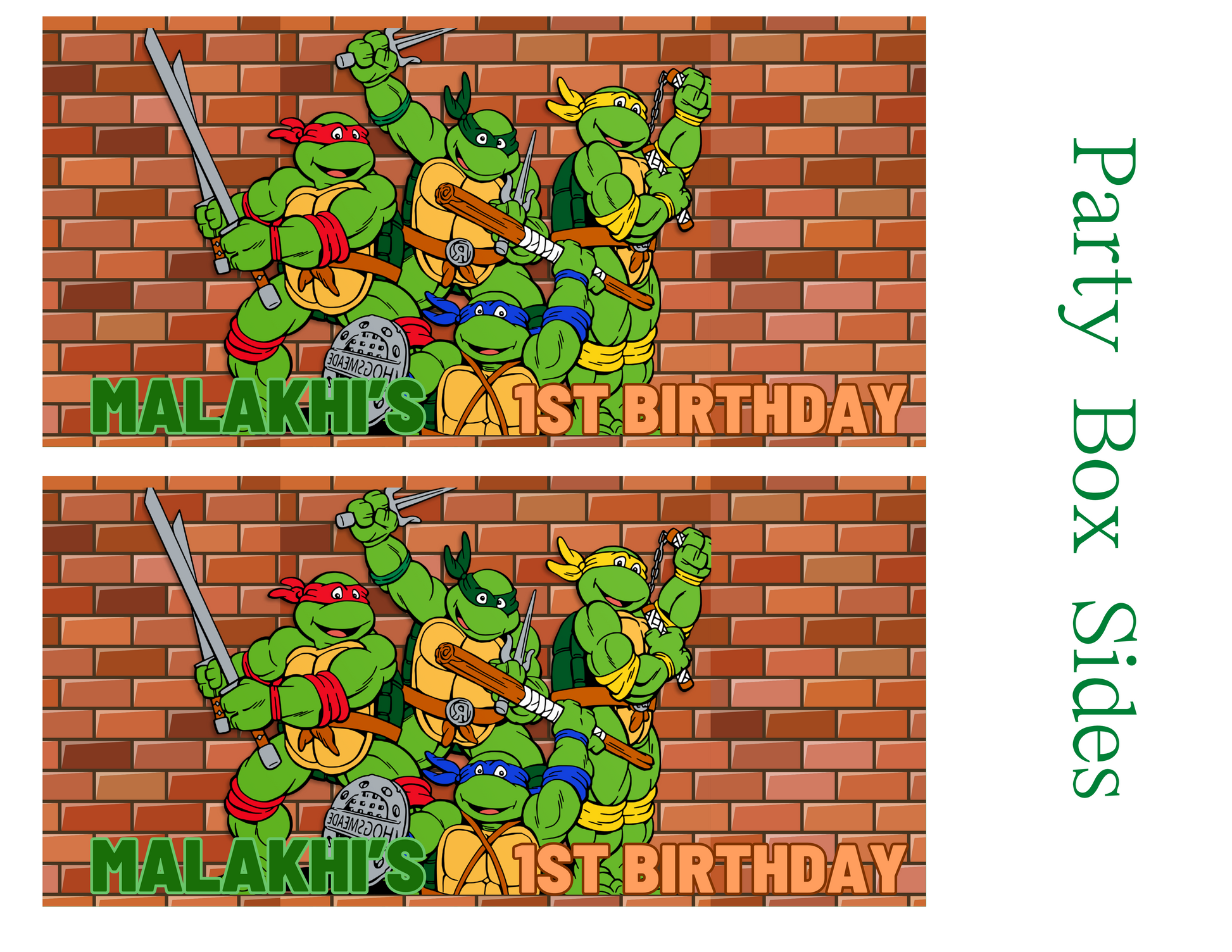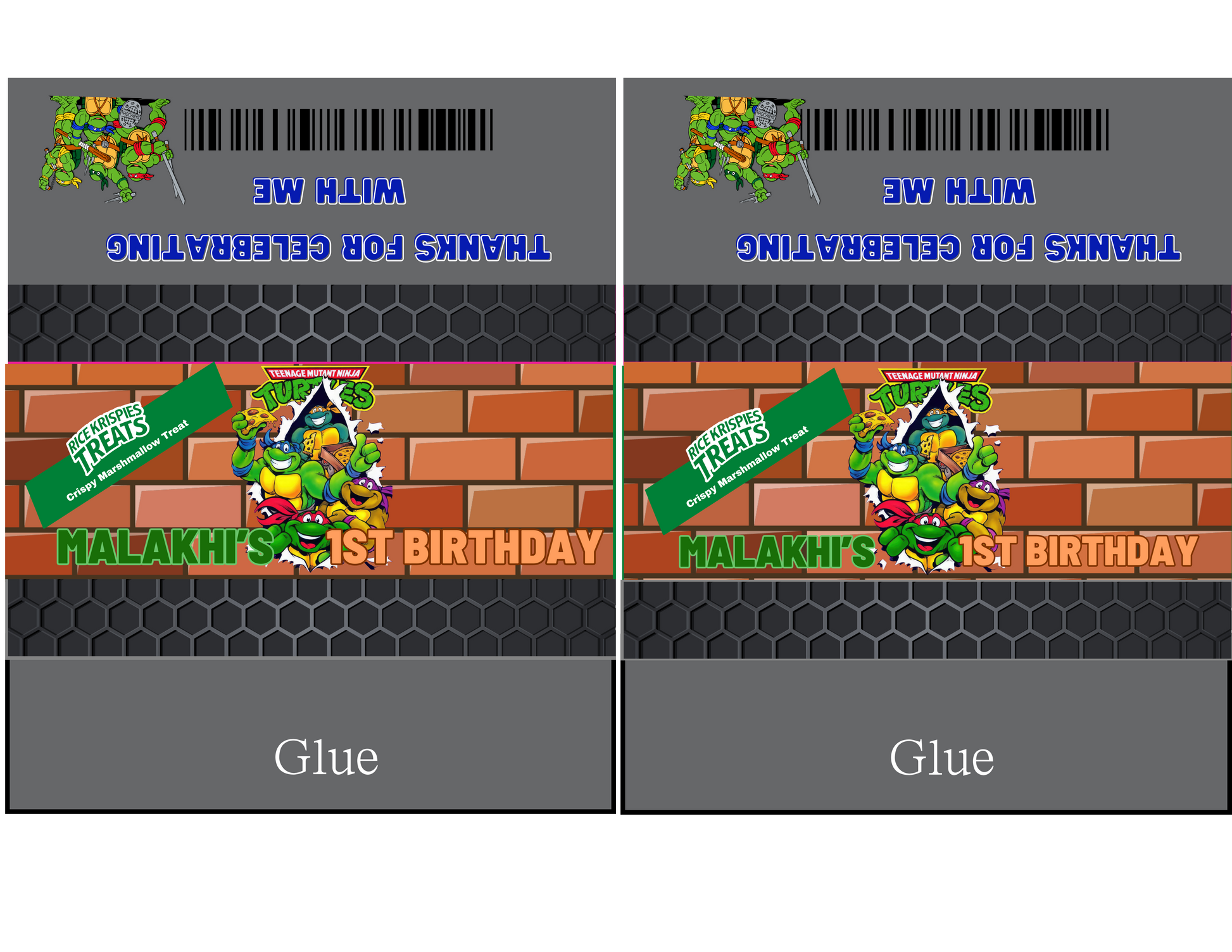 Create the ultimate Ninja Turtle party with these editable digital party favor designs! With no refunds available, you can customize your favors to perfection. Impress your guests and make your party stand out with these unique and fun designs. Don't miss out on this must-have product for any Ninja Turtle fan!