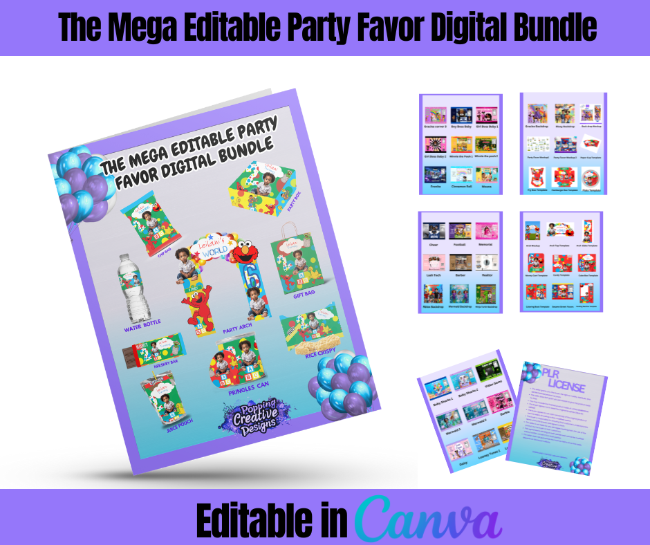 Elevate your business with The Mega Editable Party Favor Digital Bundle! This all-in-one bundle offers a variety of editable themes to suit your customer needs. Transform and customize each theme with ease using Canva. Note: Some elements may require a Canva Pro account. Sorry, no refunds issued for digital products. A video is included on how to edit your templates.